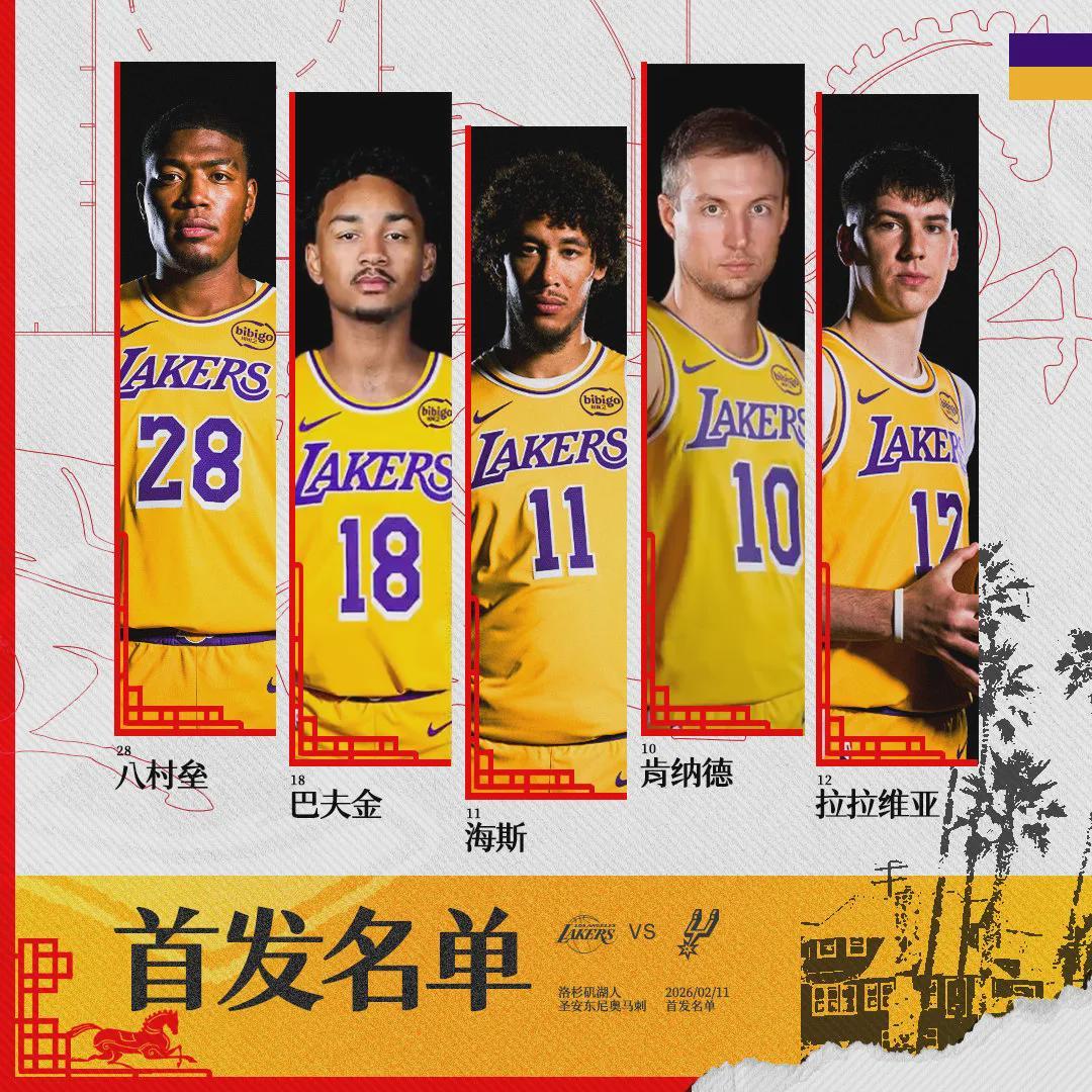北京時間2月11日,NBA常規(guī)賽:湖人主場vs馬刺,西部第五對陣西部第二。湖人傷了一套首發(fā):東契奇(左腿筋拉傷)、里夫斯(左小腿受傷)、斯瑪特(右腳踝酸痛)、詹姆斯(左腳關(guān)節(jié)炎)和艾頓(右膝酸痛),今天都不打。