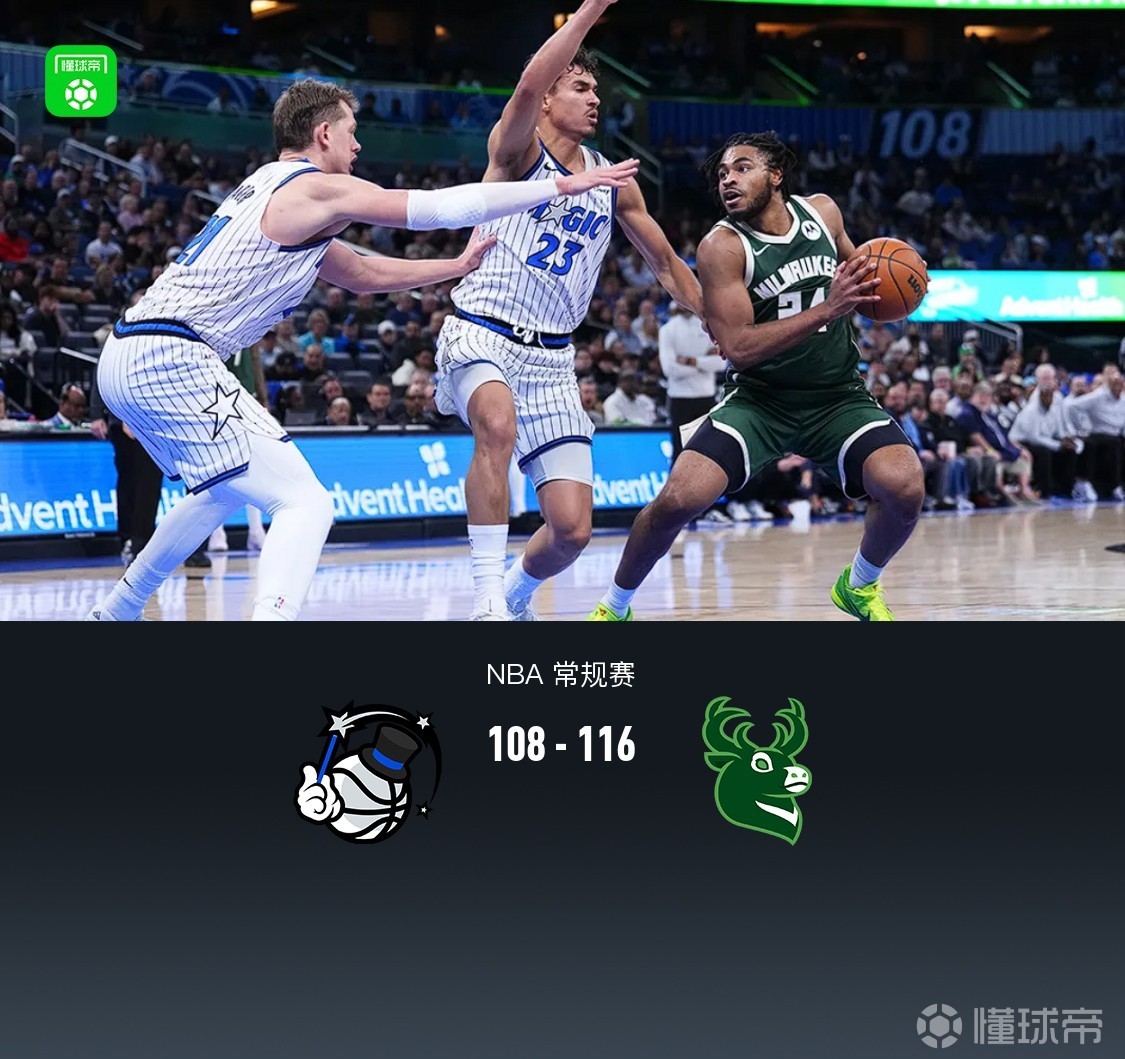 第四節(jié)魔術(shù)貝恩拿下11分,雄鹿托馬斯拿下8分,最終魔術(shù)108-116不敵雄鹿