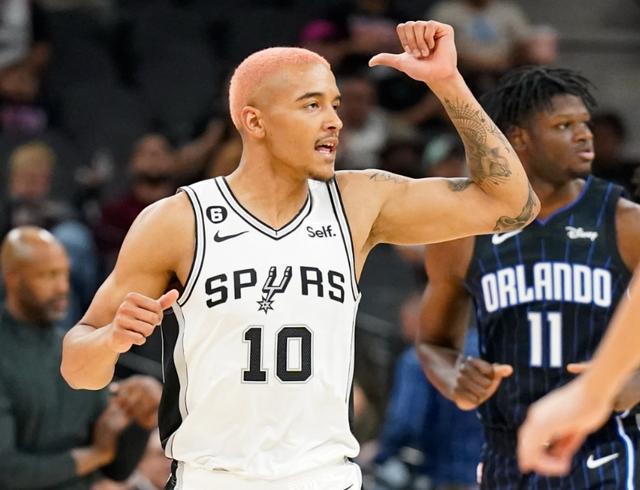 馬刺在文班亞馬帶領(lǐng)下,本賽季高歌猛進(jìn),目前以37勝16負(fù)排名西部第2。全隊(duì)上下喜氣洋洋,唯獨(dú)索漢黯然神傷。這位2022年首輪第9順位新秀,前3個(gè)賽季一直保持得分11+籃板5+助攻2+的水準(zhǔn),但是本賽季突然降至4.1分,降幅不可謂不大;三分命中率從30.8%降到25.7%,場(chǎng)均也僅收獲2.6個(gè)籃板1次助攻。
