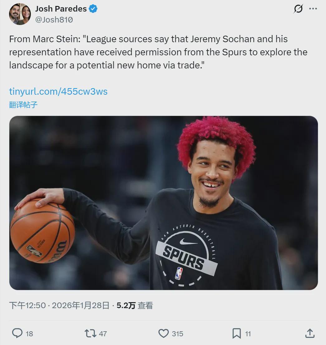 今年1月28日,索漢和經(jīng)紀(jì)團(tuán)隊(duì)獲得馬刺許可,經(jīng)紀(jì)團(tuán)隊(duì)將為索漢尋找新東家。從1月28日到2月6日交易截止日,一周多的時(shí)間,索漢并沒(méi)有找到下家。如今被馬刺裁掉,如果索漢愿意接受底薪合同的話(huà),相信有球隊(duì)給他機(jī)會(huì)。