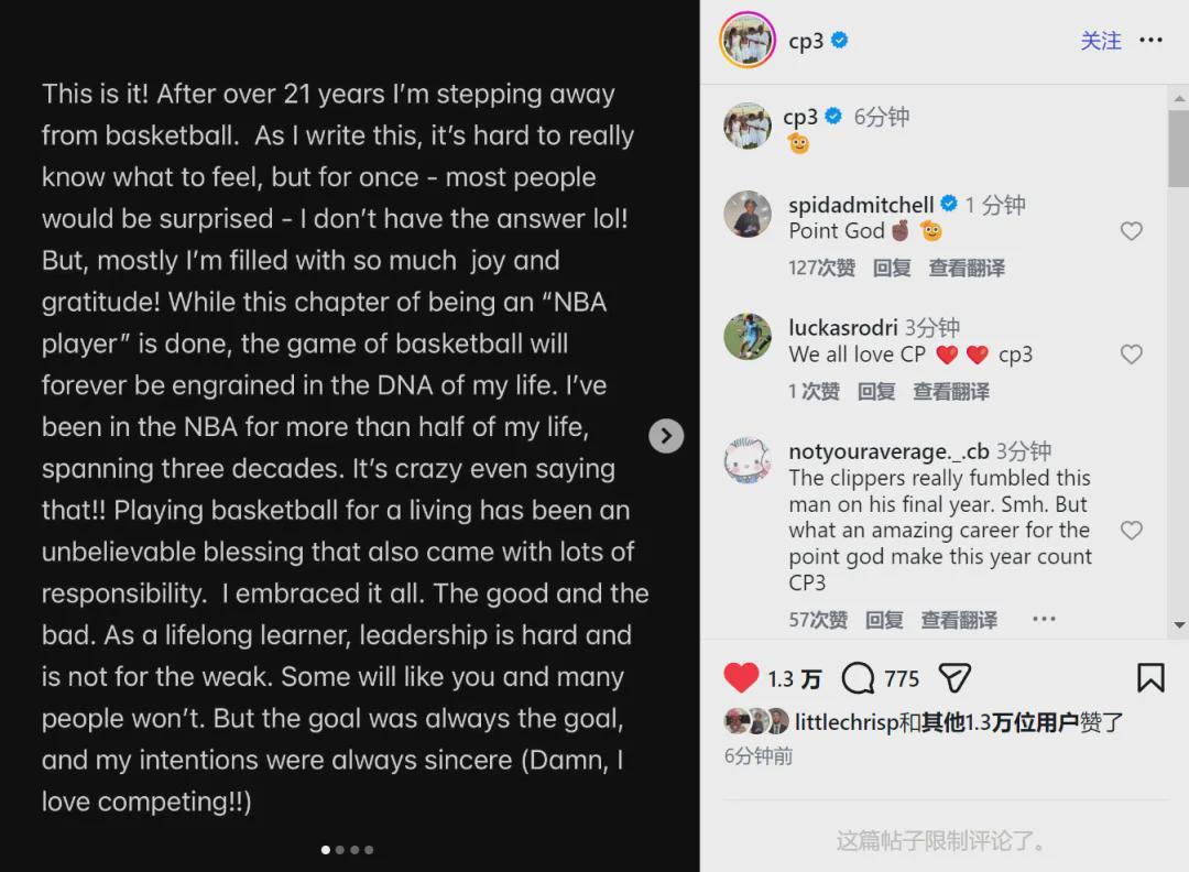 祝福保羅,希望CP3退役之后的生活更精彩!