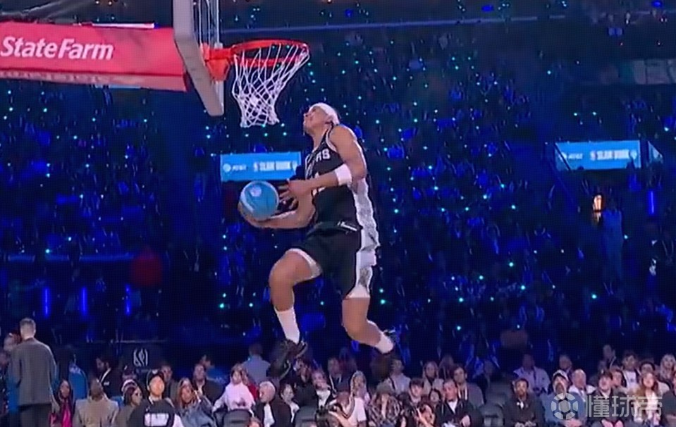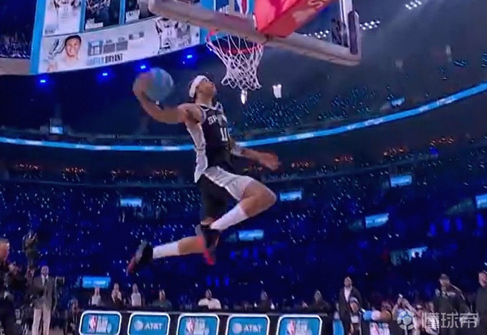 第一位登場的為馬刺新秀卡特-布萊恩特,他奉獻(xiàn)一記360度大風(fēng)車扣籃,得到45.6分。