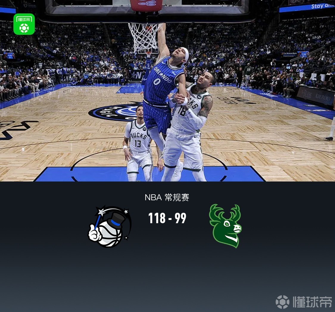 魔術(shù)118-99大勝雄鹿,貝恩25分,布萊克26分,波特28+7