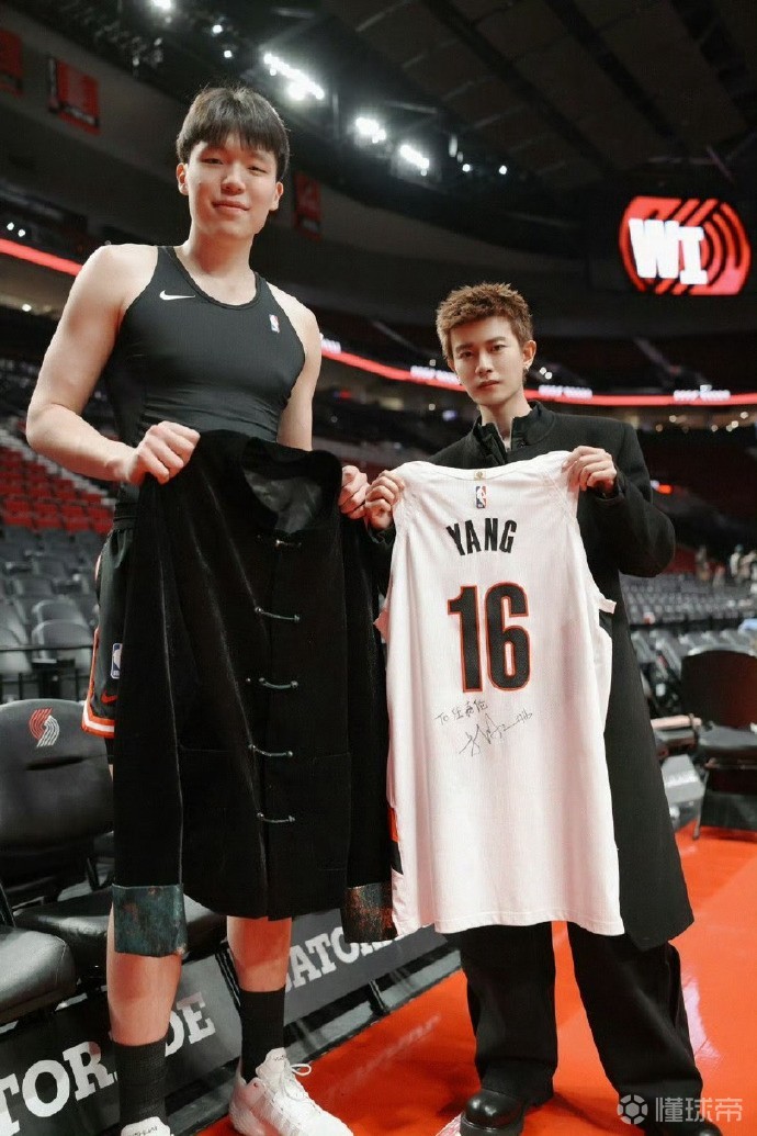山東演員任嘉倫造訪開拓者主場,獲贈楊瀚森簽名球衣