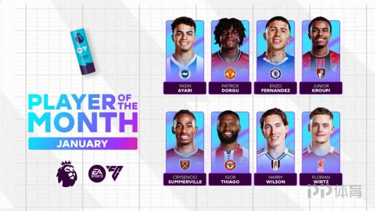 英超官方1月最佳球員候選:維爾茨、恩佐、多爾古在列